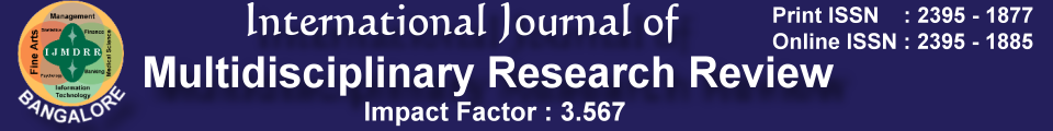 INTERNATIONAL JOURNAL OF MULTIDISCIPLINARY RESEARCH REVIEW (IJMDRR) International Journal of Multidisciplinary Research Review (IJMDRR) is a reviewed monthly print and on line Journal. It is association of senior Professors, Eminent Research Agencies, Industrialists, Enterpurnres, Professionals, Academic Leaders, Engineering Firms, Research Labs, Social Science reviewer, Mathematicians & Statisticians and reviewer from various fields and managed by group of Professors. It helps the researcher to publish their intellectual research paper at right time, Quality with the guidance of our panel members. Scope &Coverage The International Journal of Multidisciplinary Research Review accepts the research paper, case studies, book reviews, conceptual, empirical and exploratory papers from Enterpurnreship, Psychology, Management,Human resource/administration,Public Administration, Sociology, Economics, Education, Business, Commerce,Marketing management, Corporate Governance, Financial /Banking ,Hospitality, Tourism & Travel Management, Arts, Fine Arts, Designing,Engineering, Information technology, Computer Science, Medical, Bio-medical,Pharmaceutical Science, Clinical Research, Home Science, Medical Science, Psychology, Human ideology, Organization behaviour, Organization psychology,Law,Corporate, Environmental Science, Library Science, Geography, History, Intellectual Property Rights, Industrial Laws, Journalism, Literature, Philosophy,Political Science, Rural India, Statistics, Applied& Social Sciences related areas. |